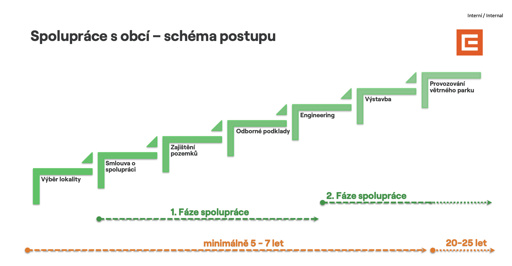 Zde začíná 1. Fáze (minimálně 5 let do spuštění větrného parku) - Smlouva o spolupráci. <- V této fázi se nachází město Úpice a ČEZ a.s.