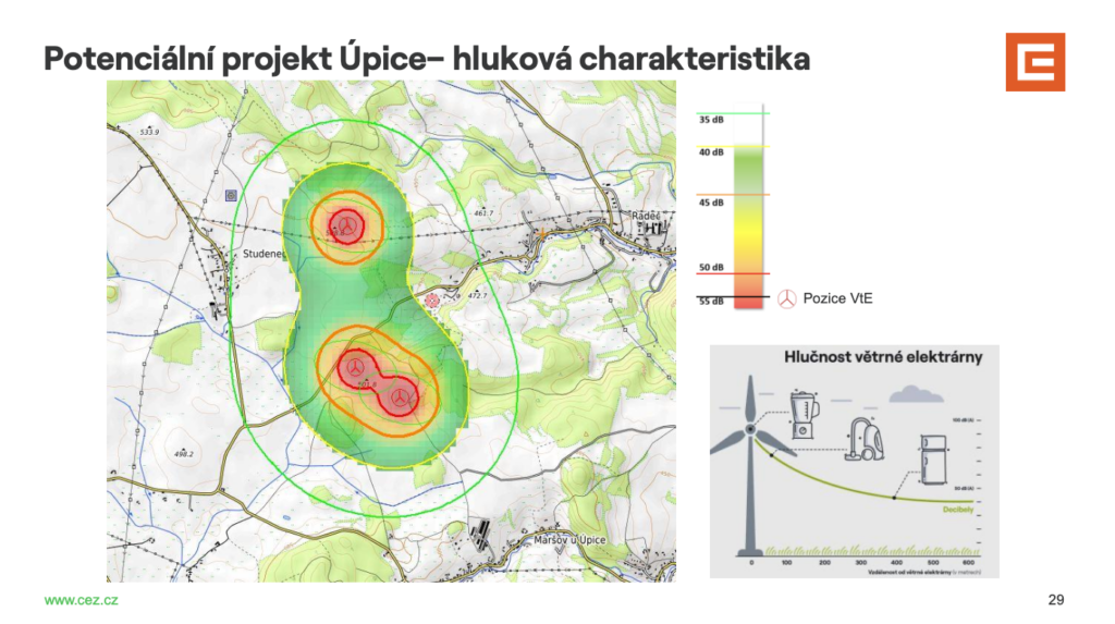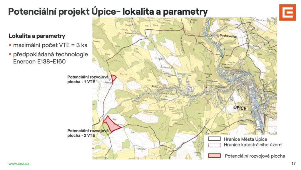 Zdroj: Prezentace ČEZ a.s. – Větrný park Úpice, strana 15